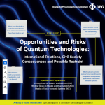 - DPG: Opportunities and Risks of Quantum TechnologyDie Anmeldung ist bis zum 16. September 2025 möglich und das Programm wird aktualisiert. 19. – 21. Oktober 2025, Physikzentrum Bad Honnef Chancen und Risiken von Quantentechnologien: Internationale Beziehungen, zivilgesellschaftliche… Read more »