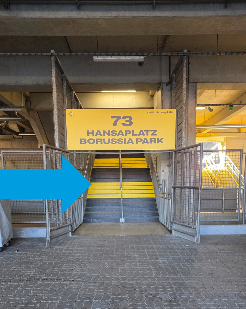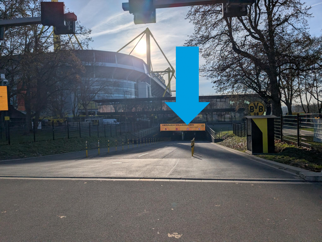 Um zu den Parkplätzen auf dem Parkplatz Luftbad des SIGNAL IDUNA PARK zu gelangen, nutzen Sie die Rampe, die von der Strobelallee aus unterhalb der BVB-FanWelt hindurchführt. Ihnen stehen bis zu 1.000 Parkplätze kostenlos zur Verfügung. Sie verlassen den Parkplatz zu Fuß durch den Fanshop (genügend Zeit einplanen 😉 oder über die Rampe zurück auf die Nordseite des Stadions (Strobelallee ist die Nordseite).
