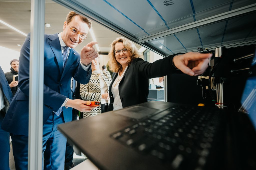 Vertreter*innen aus Politik, Wissenschaft und Wirtschaft würdigten die Paderborner Spitzenforschung im Bereich der Quantenphotonik, die das Potenzial hat, die digitale Welt grundlegend zu verändern. Denn photonische Anwendungen, also solche, die auf Licht basieren, sind besonders wichtig für die künftige Kommunikation, den Datentransfer oder die Sensorik. Durch den Aufbau eines wissenschaftlichen Ökosystems entstehen nationale sowie internationale Partnerschaften mit führenden Institutionen und Unternehmen, die die Innovationskraft der Region steigern. „Mit dem PhoQS Lab eröffnen wir in Nordrhein-Westfalen ein einzigartiges Forschungsgebäude für eine der wichtigsten Zukunftstechnologien unserer Zeit. Quantentechnologien werden unsere Wirtschaft, unsere Kommunikation und unseren Alltag grundlegend verändern. Hier in Paderborn entstehen die Ideen und Innovationen, die über technologische Wettbewerbsfähigkeit, neue Arbeitsplätze und nachhaltigen Wohlstand entscheiden. Nordrhein-Westfalen zeigt damit: Wir wollen die technologische Revolution aktiv mitgestalten und international Maßstäbe setzen. Mit gezielten Investitionen in Spitzenforschung stärken wir unseren Standort nachhaltig und schaffen die Grundlage dafür, dass Zukunftstechnologie ‚Made in NRW‘ weltweit gefragt ist. Das PhoQS Lab steht exemplarisch für unseren Anspruch, Nordrhein-Westfalen als führendes Innovations- und Technologieland in Europa weiter auszubauen und für unser Ziel, die technologische Souveränität unseres Landes zu stärken“, so Ministerpräsident Wüst.